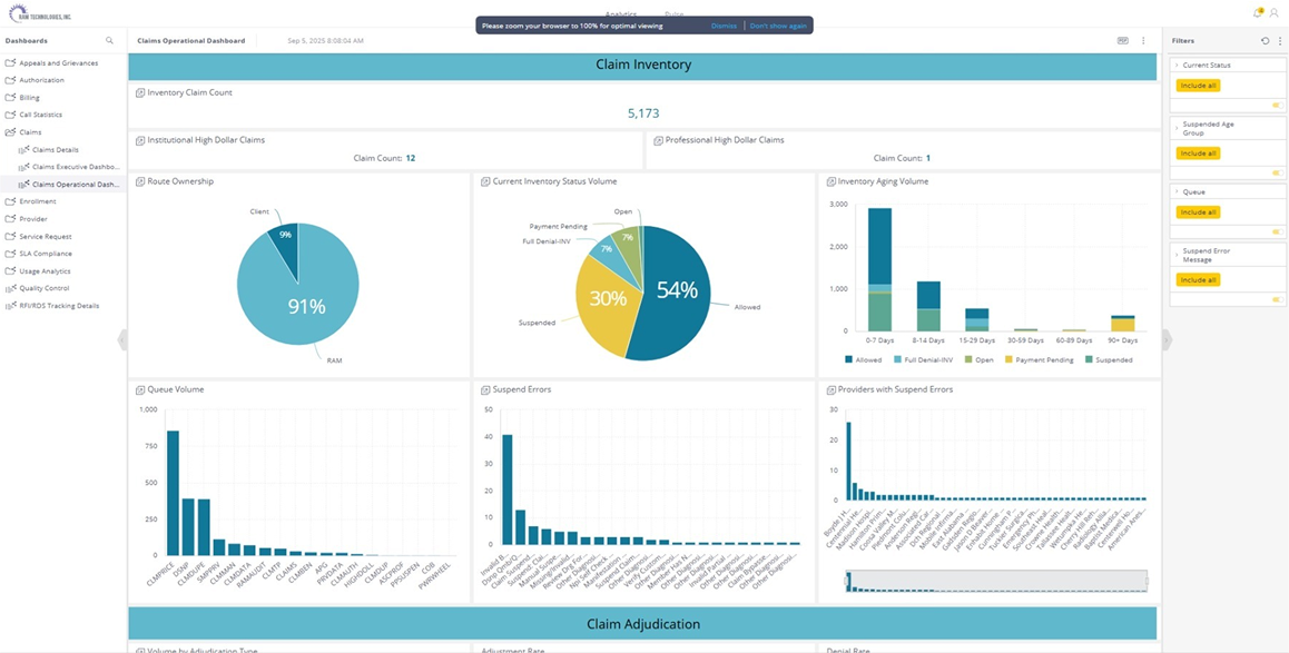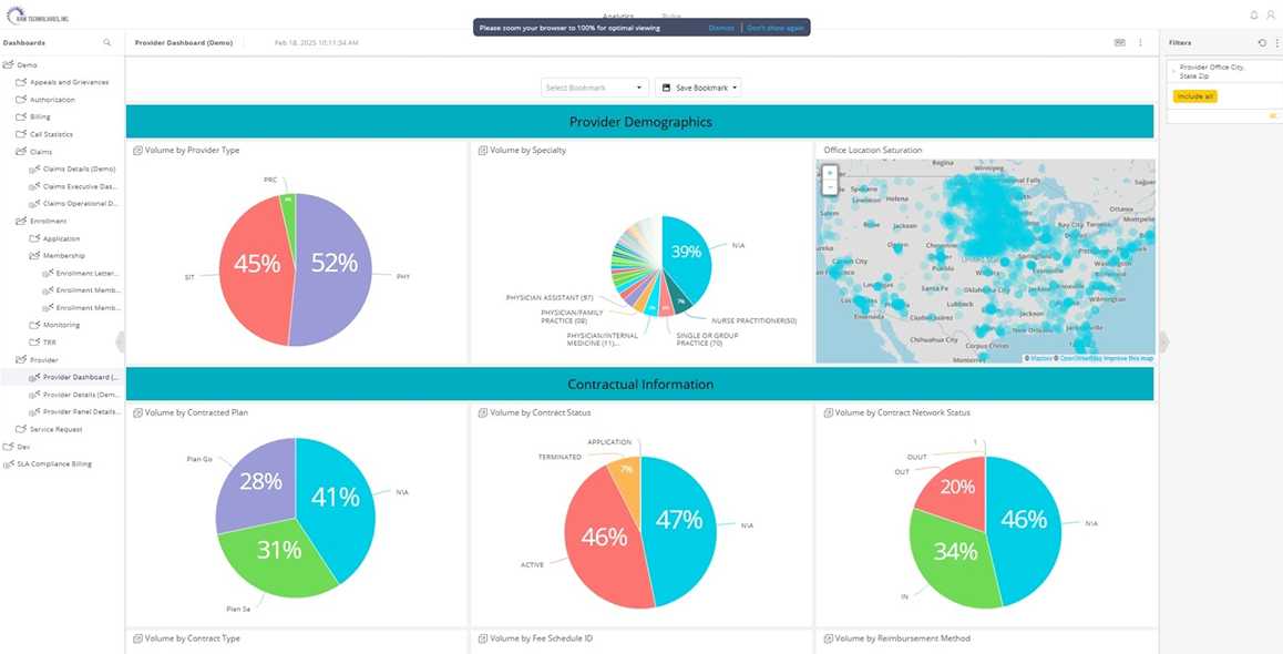 DASH provides insight into operations while eliminating information overload. This capability allows you to anticipate and answer business questions in real time. This one-stop view of your analytics, organizing service requests, grievances, service level agreements, and more, is a huge development for the industry, putting HEALTHsuite Advantage a step above.